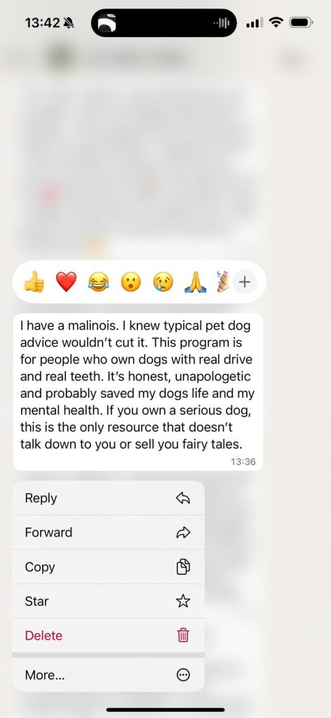 It’s a structured bridge from insight → clarity → capability — designed specifically for instinct-driven behaviour like reactivity, predation and resource guarding.